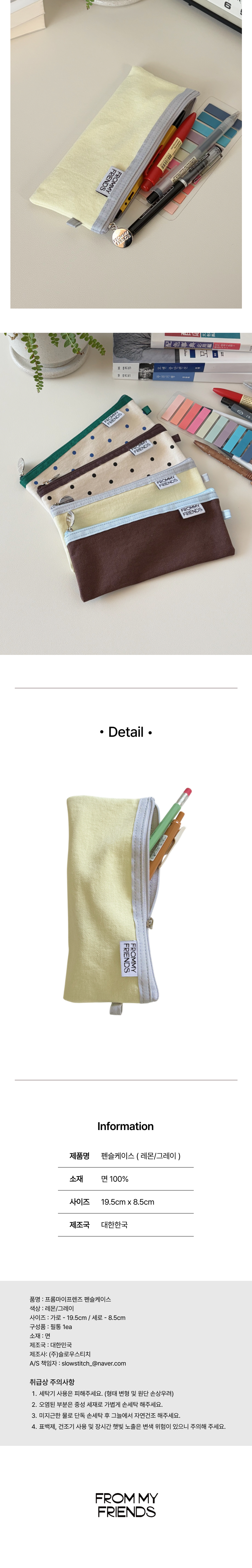 패브릭 펜슬케이스 필통 ( 레몬/그레이 )