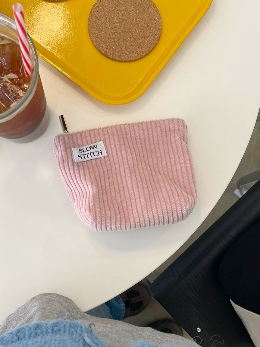 코듀로이 파우치 ( Pastel pink slowstitch x loft jp )