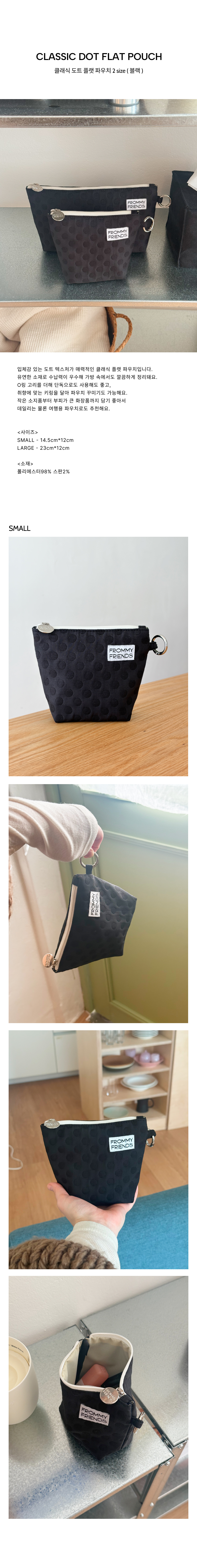클래식 도트 플랫 파우치 2size (블랙)